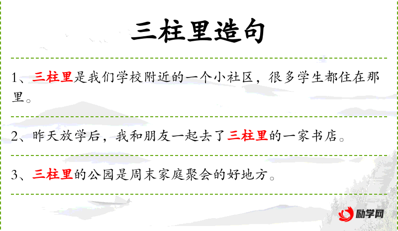 1. 【三柱里】 唐刘仁轨所居的里巷。因其子侄三人并授上柱国,故称。