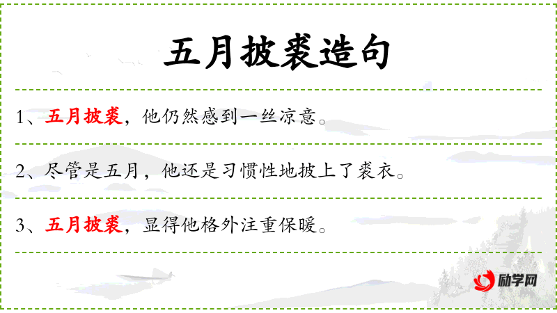 句子:“五月披裘,他的这一举动让人印象深刻。”