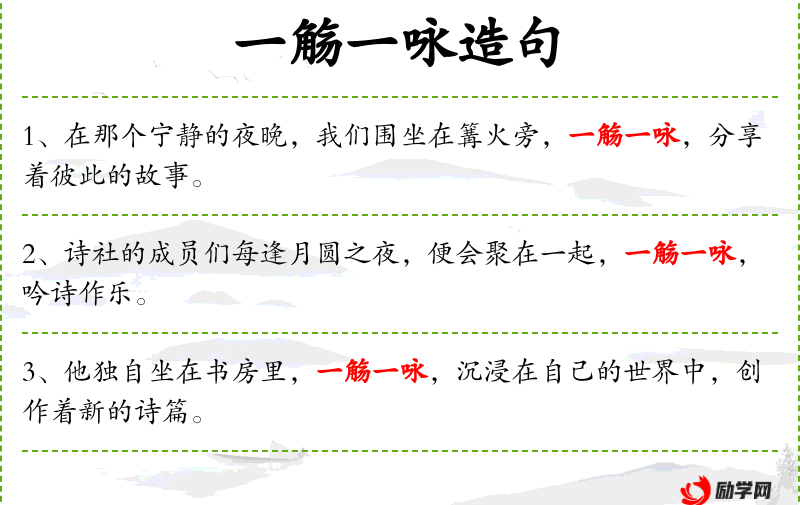 - 一觞一咏:指一边饮酒一边吟诗,形容文雅的社交活动。