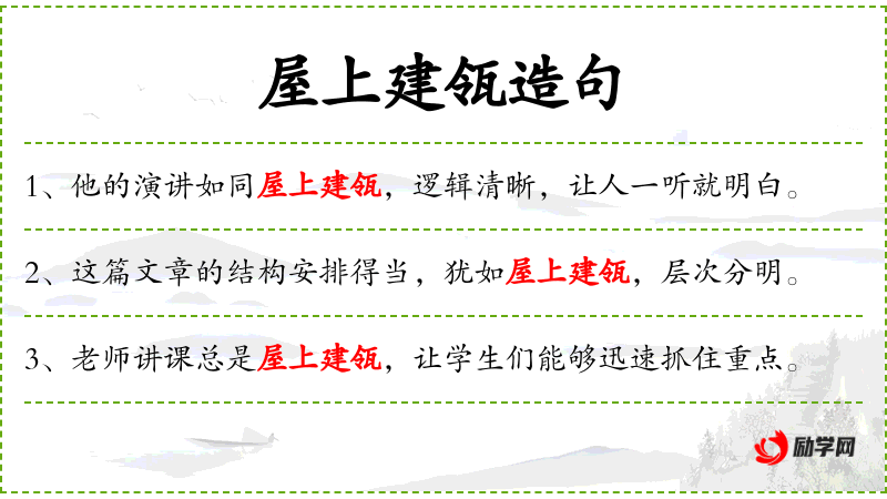 - 屋上建瓴:这个成语源自《左传·僖公二十五年》,原意是指在屋顶上建水槽,比喻高瞻远瞩。