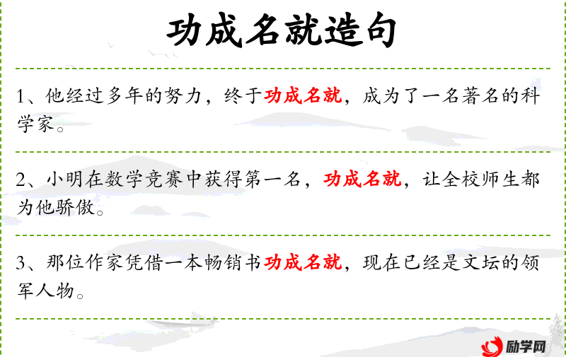 - 功成名就:形容词+名词,表示取得了成功和名声。