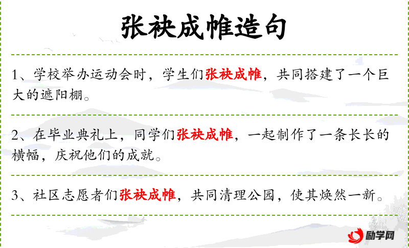 句子:“社区志愿者们张袂成帷,共同清理公园,使其焕然一新。”
