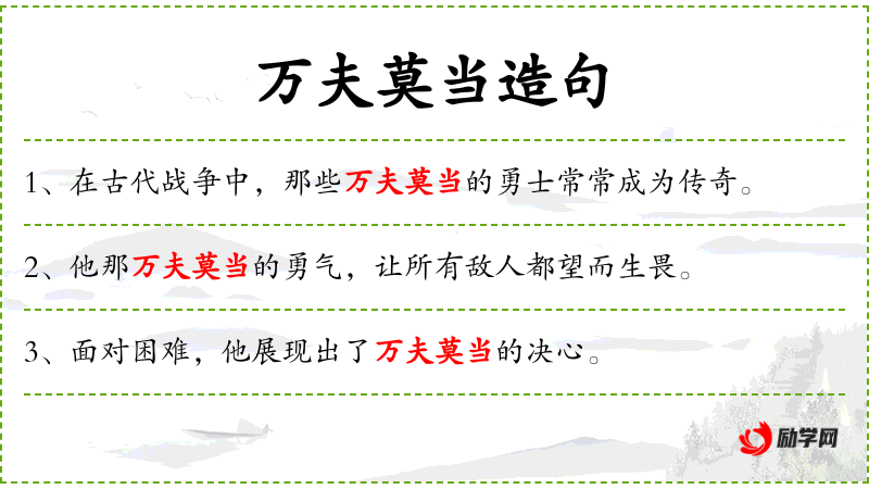 - 万夫莫当:这个成语源自**古代,常用于形容武将或英雄的英勇无敌。