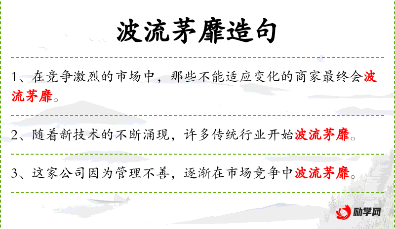 7. 【波流茅靡】 随波逐流,随风而倒。比喻胸无定见,趋势而行。
