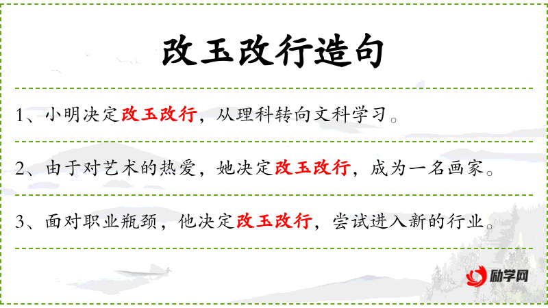 - 改玉改行:成语,意为改变职业或行业。
