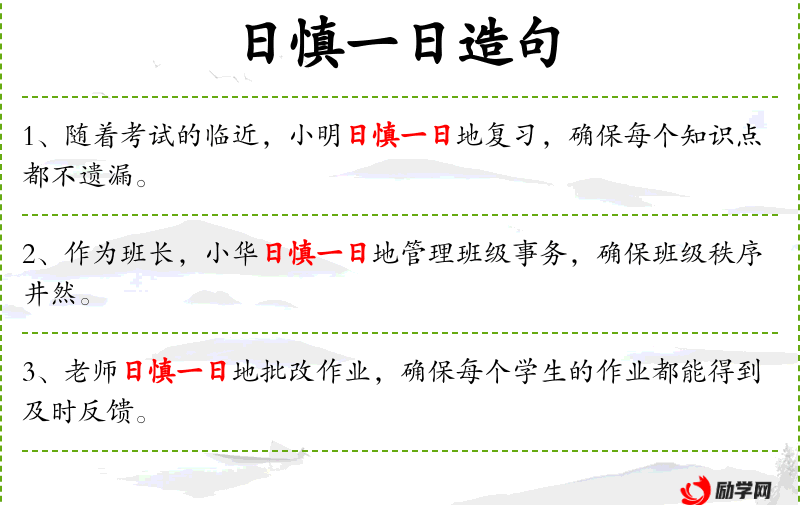 - 日慎一日:形容一天比一天更加谨慎或努力。