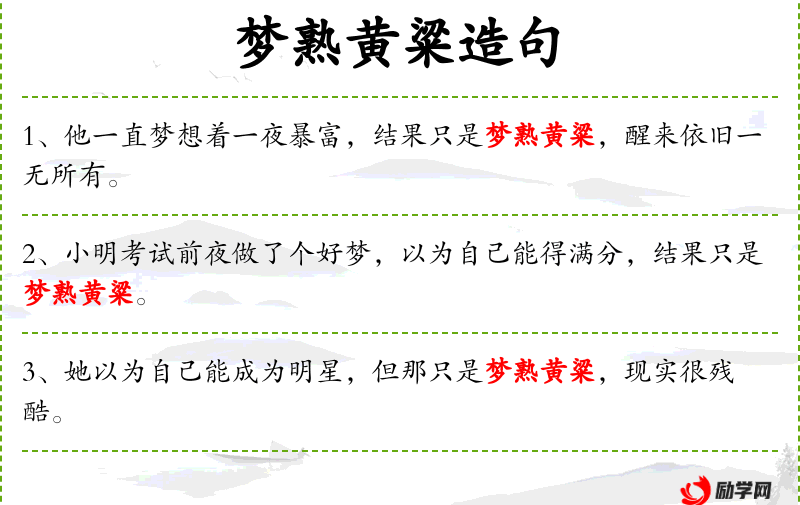 黄粱:粟米。比喻美好的愿望如同梦幻一样。