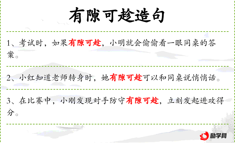 3. 【有隙可趁】 隙:空隙。指事情有漏洞可以利用