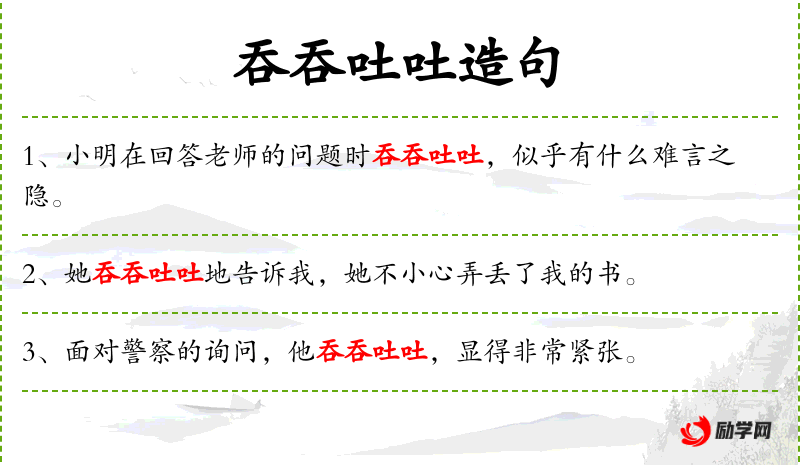 - 状语:吞吞吐吐地