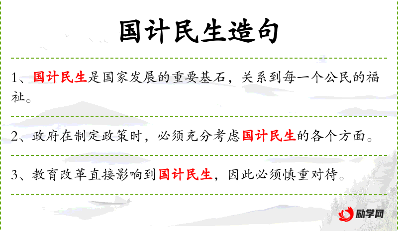- 国计民生:指国家的经济和人民的生活。