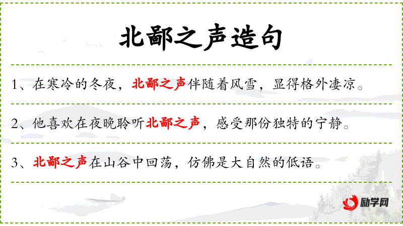- 不同句式:“随着晨曦的到来,北鄙之声逐渐消失,新的一天悄然开始。”