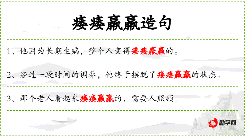 2. 【痿痿羸羸】 - 痿:肢体麻木;羸:瘦弱。形容身体瘦弱不堪。