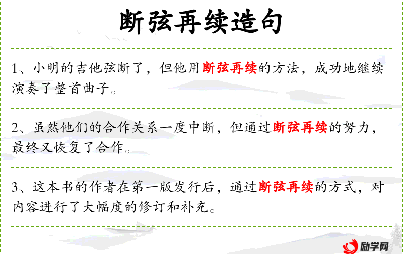 - 断弦再续:比喻中断后重新连接或恢复。