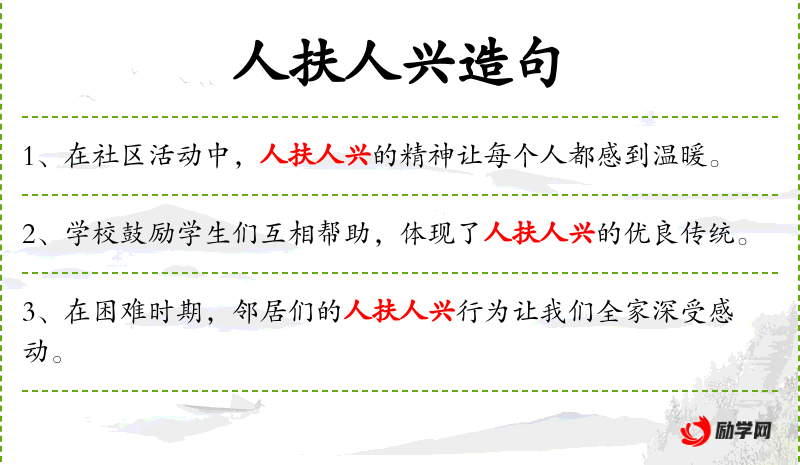- 人扶人兴:形容人们在困难时互相帮助,共同振兴。