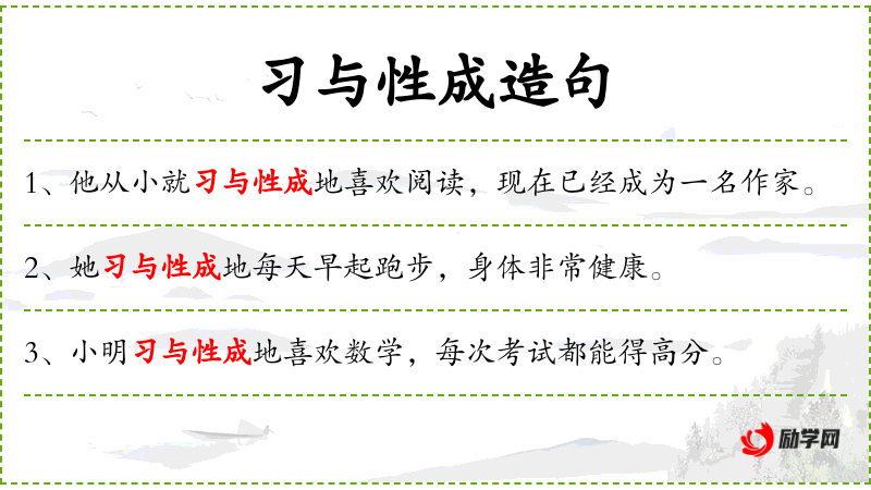 - 与性成地:表示惯已经成为性格的一部分,强调*惯的持久性和内在性。