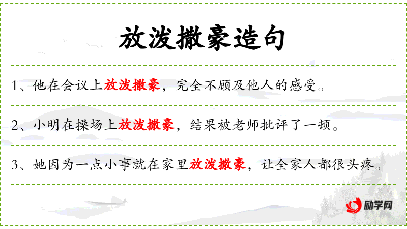 - “放泼撒豪”是一个成语,源自**传统文化,形容人行为放纵、不顾后果。