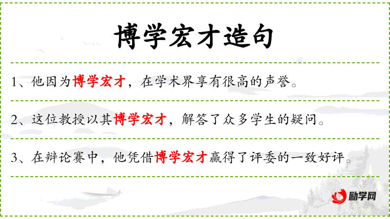 - 博学宏才:形容人学识广博,才能卓越。