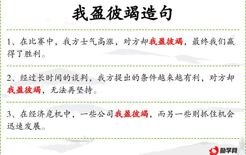 - 文化意义:“我盈彼竭”反映了竞争中一方优势增强,另一方劣势加剧的情况。
