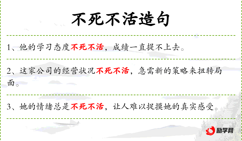 1. 【不死不活】 - 说死没死,说活未活。形容没有生气或处境尴尬。