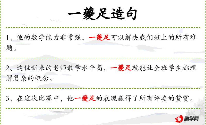 1. 【一夔足】 《韩非子.外储说左下》"夔一而足矣。"谓只要是真人才,一个就足够。