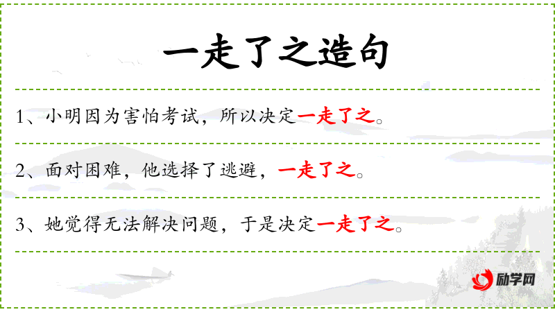- 一走了之:这个成语在**文化中常用来形容在困难或无法解决的情况下选择逃避。