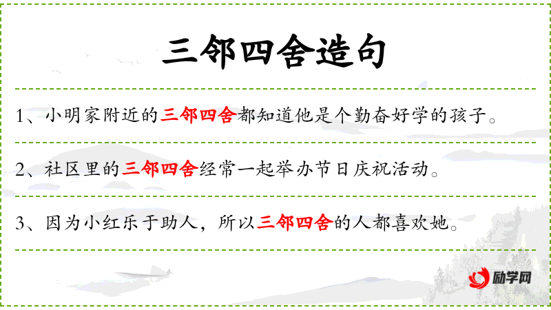 每当有困难时,三邻四舍的邻居们总是互相帮助。