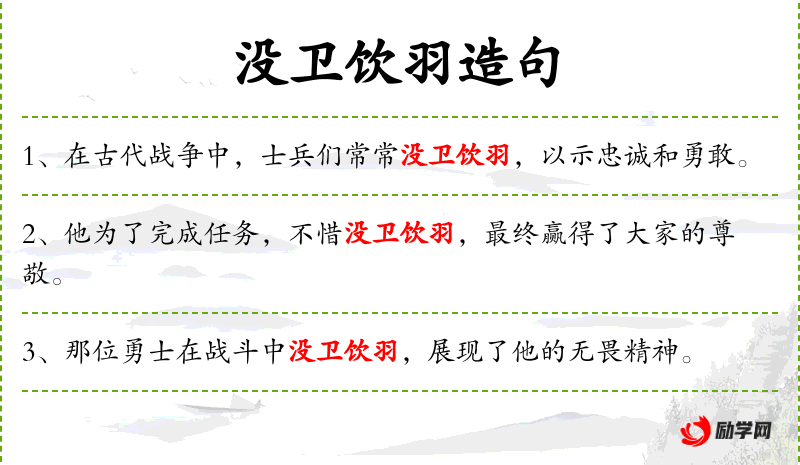 1. 【没卫饮羽】 - 指连箭的翎都射没在物体中。极言射力之大。
