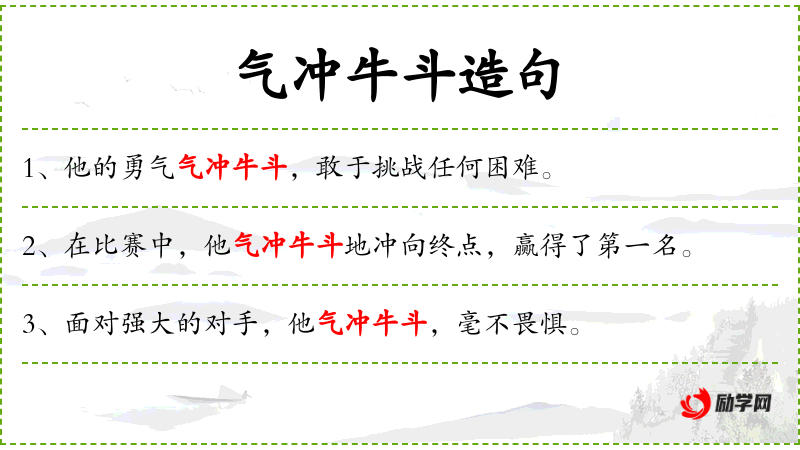 6. 【气冲牛斗】 气:气势;牛、斗:即牵牛星和北斗星,指天空。形容怒气冲天或气势很盛。