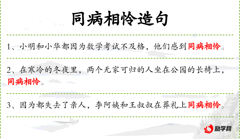 句子:“因为都经历了家庭的变故,小刚和小丽在心理辅导课上同病相怜,互相支持。”