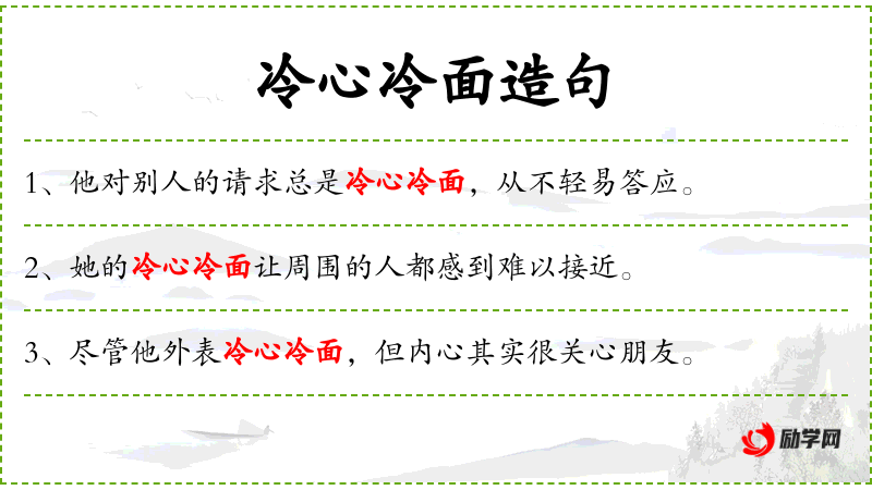 - “冷心冷面”在**文化中常用来形容人的冷漠或不易亲近的性格。