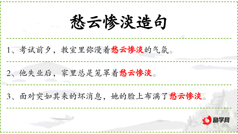 “愁云惨淡”是一个成语,源自**传统文化,常用于形容心情不佳或环境凄凉。这个成语的使用反映了汉语中丰富的情感表达方式。