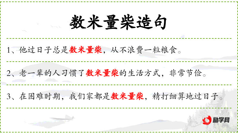 - 宾语:数米量柴、珍惜每一分资源