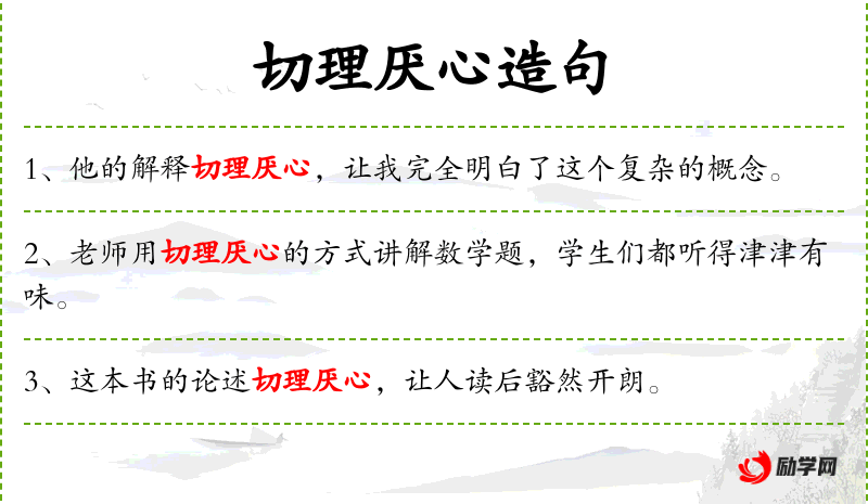 - 切理厌心:可能是一个成语或专业术语,意指分析深入、透彻,令人心悦诚服。