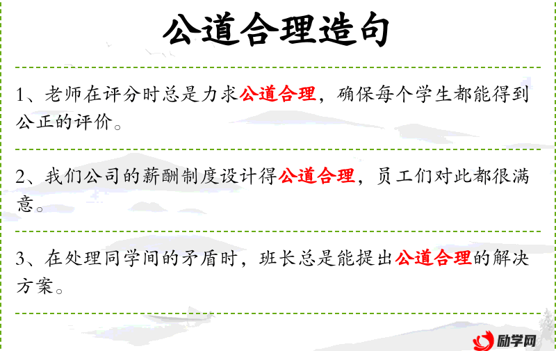 - “为了确保每个学生都能得到公正的评价,老师在评分时总是力求公道和合理。”