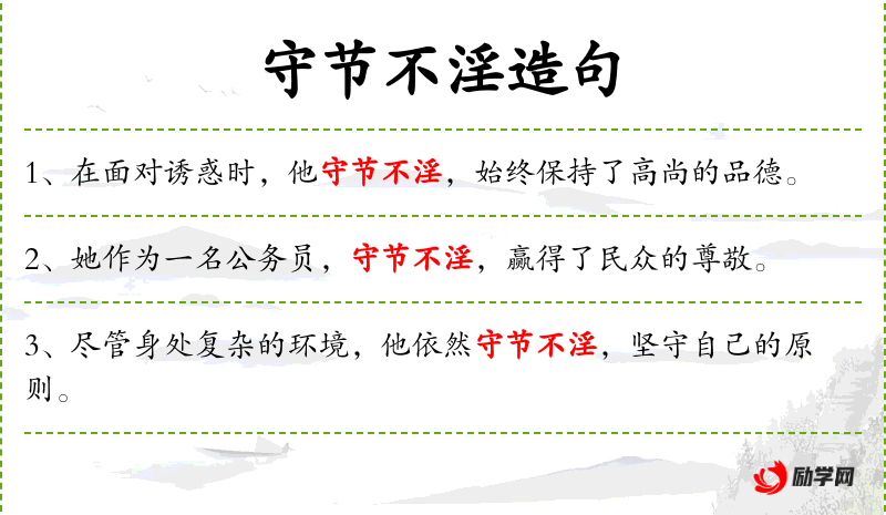 - 守节不淫:指保持道德操守,不因诱惑而堕落。