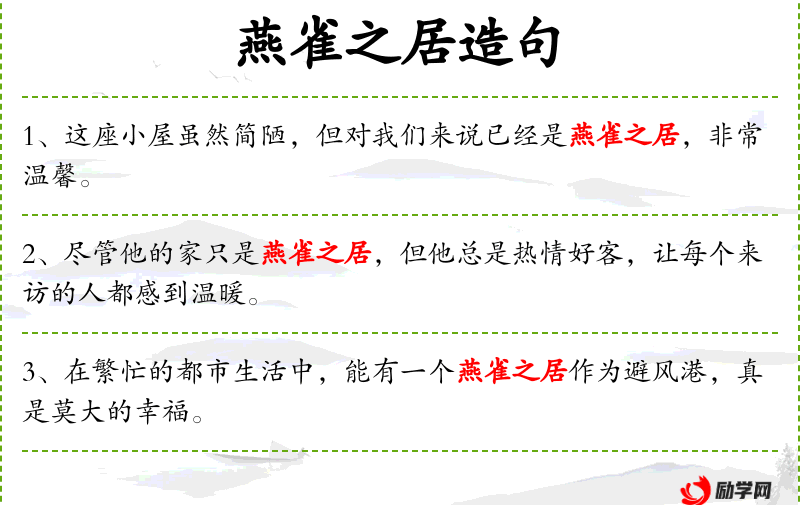4. 【燕雀之居】 比喻简陋的庐舍。