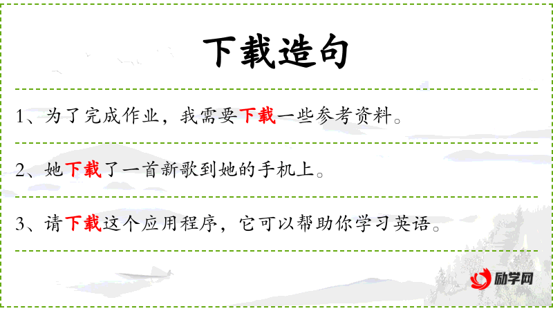 从互联网或其他计算机上获取信息并装入到某台计算机或其他电子装置上(跟“上传”相对)。