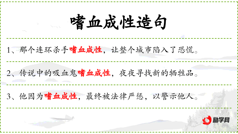 - “嗜血成性”这个表达在**文化中可能较少见,但在描述极端暴力或残忍行为时,这种表达方式是有效的。