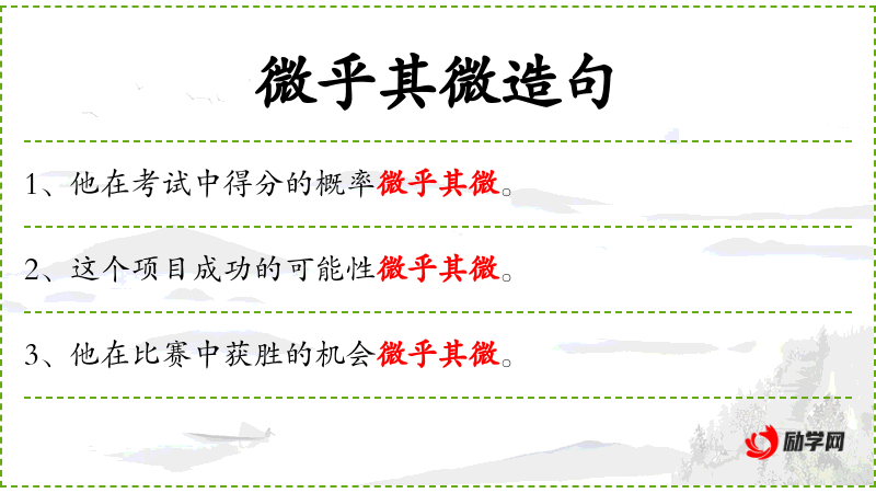 - 微乎其微:成语,表示非常小,几乎可以忽略不计。