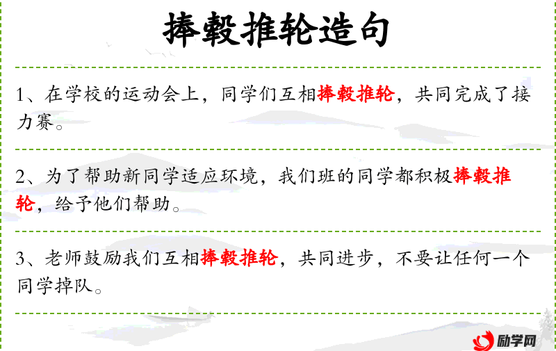 - 捧毂推轮:这个成语源自古代车辆结构,毂是车轮的中心部分,轮是车轮的外圈。比喻互相帮助,共同前进。