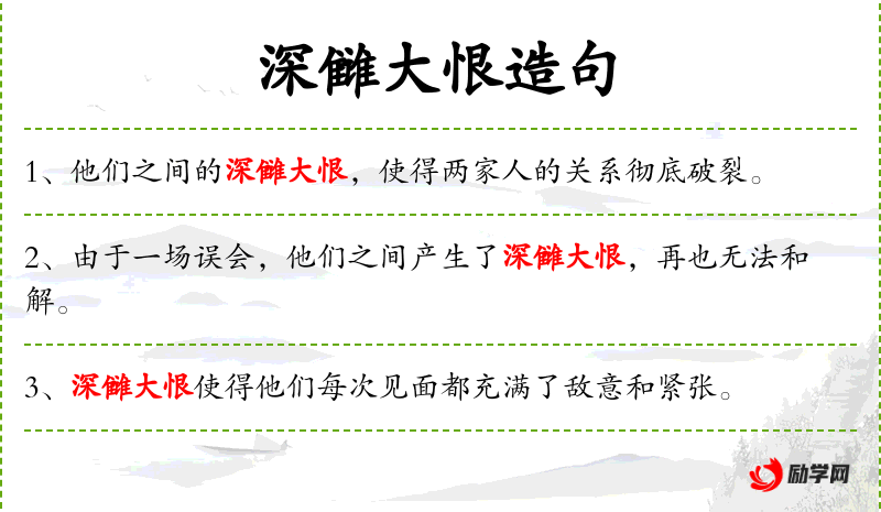 3. 【深雠大恨】 - 深而大的仇恨。同“深仇大恨”。