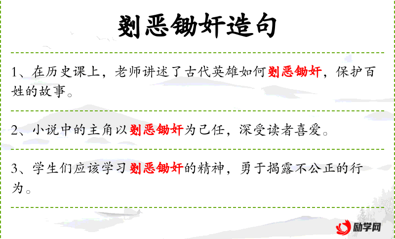 - 剗恶锄奸:这个成语体现了**传统文化中的正义观念和道德标准,强调社会需要正义和善良来对抗邪恶和奸诈。