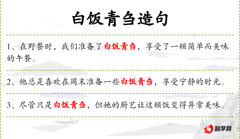 3. 【白饭青刍】 - 白饭供客,青草喂马。比喻主人招待周到。