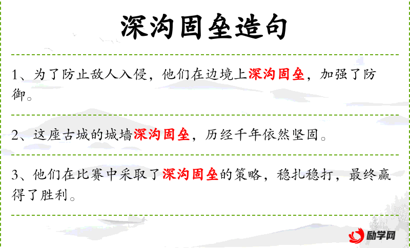 3. 【深沟固垒】 - 犹深沟高垒。深的战壕和高的营垒。指坚固的防御工事。