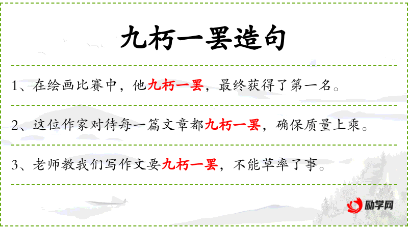 - 九朽一罢:这个成语源自**古代,体现了对完美追求的文化传统。