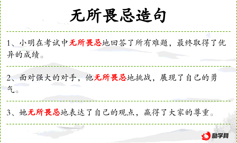 - 状语:在舞台上(地点状语),无所畏忌地(方式状语),赢得了观众的热烈掌声(结果状语)