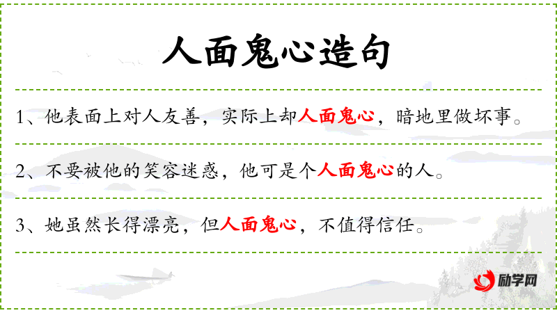 - 人面鬼心:这个成语源自**传统文化,用来形容人的两面性。
