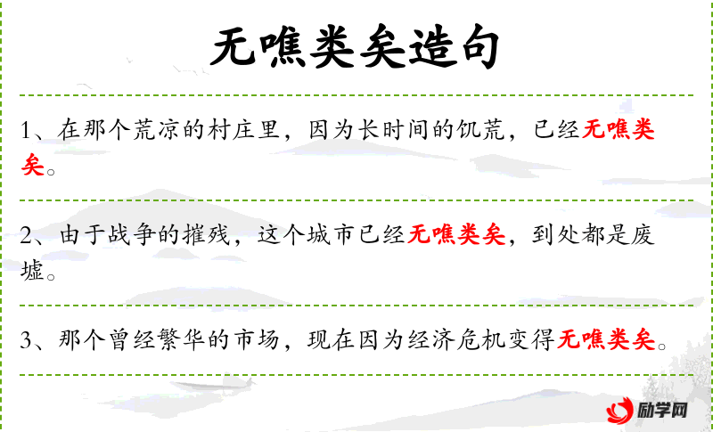 - 宾语:这个地区的河流干涸,鱼类无噍类矣