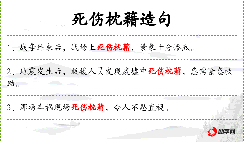 3. 【死伤枕藉】 - 枕藉:纵横相枕而卧。形容死亡的人非常多。