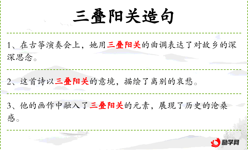 句子:“[她用三叠阳关的笔法,在书法作品中展现了深厚的文化底蕴。]”
